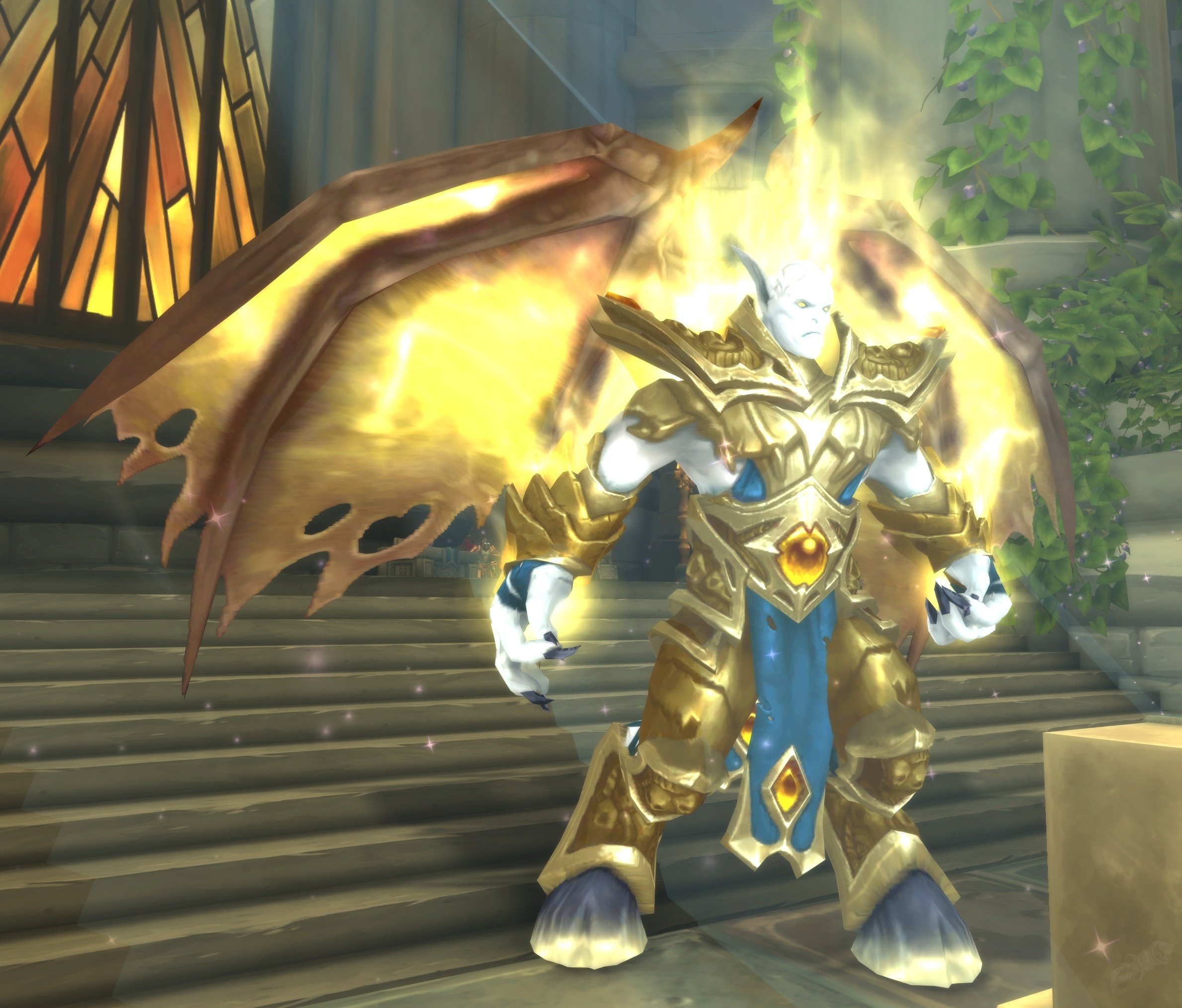 Isolated and far from home, the Expedition fought through some of the collapsing rifts, one of which cut Turalyon and Alleria off from their allies. Danath Trollbane and Khadgar felt the loss of their friends deeply, assuming the worst. However, Turalyon and Alleria survived, rescued by Lothraxion (the Light Nathrezim from Argus). They met Xe’ra, the Prime Naaru, who informed them that they would be major factors in the war against the Legion. They accepted her invitation to join the Army of the Light in the Twisting Nether, finding sanctuary aboard the Xenedar. Since time flows differently in the nether, Alleria and Turalyon lived through more than 500 years in just two Azerothian decades. During their training and stay on the Xenedar, Xe’ra infused Turalyon with Light, granting him immortality and making him a Lightforged.