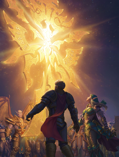 Turalyon returned to the Xenedar, finding solace in his place in the Army, eventually rising to be a High Exarch over the next 500 years. When Turalyon and Lothraxion were attacked by the same assassin who went after them after Draenor’s destruction, Alleria saved them this time. Out of love, Turalyon told her to leave, knowing Xe’ra would not accept Alleria’s use of the Void. Alleria stood her ground, but when Xe’ra arrived, even after Turalyon pled for mercy and showed the Naaru Alleria’s heroic deeds, she declined his plea, imprisoning and punishing Alleria for going against the Light. Turalyon, dismayed that he couldn’t spare her from Xe’ra’s judgment, tried to remain calm in the knowledge that he and Alleria would always fight for each other.